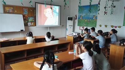 在读书分享会开始之前,实践团队员先以一首《冬夜读书示子聿》引入课题,从古人的角度指明了读书的方法和意义。然后带领孩子们一起观看短片《匡衡凿壁偷光》和《陈平忍辱苦读书》,以动画短片的形式讲述古人是如何努力读书的,孩子们专心致志,收获颇多。最后,队员同孩子们一起玩了游戏——心有灵犀,在欢声笑语中度过了愉快的一天。
