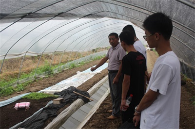 王站长向实践队员详细介绍了大棚种植中自动化灌溉的应用、培育技术以及其他种植中的问题,并讲解了各项自然条件对大棚作物生长的影响。王站长告诉实践队员各项自动化新技术的应用极大提高了作物的质量和产量,并勉励实践队员好好学习,在毕业后用自己的所学所得为国家的建设作出贡献。
