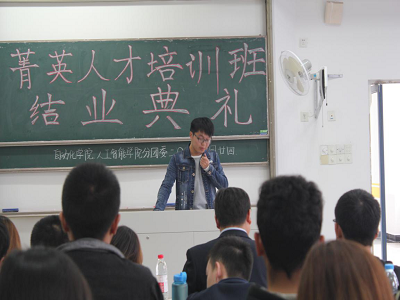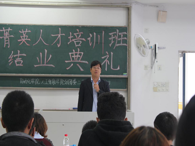 在主持人宣布大会开始后,首先由杜书记上台讲话,杜书记从三个方面对菁英人才培训班的成员们提出了几点要求。第一点,使命。菁英班的成员们,作为学院主要的员工干部,要有正确的思想认识,端正自己的态度,在党的领导下,担负起历史重任。第二点,奉献。菁英班的成员们,要懂得去帮助其他同学,帮助其他人树立正确的价值观,为同学们服务,奉献自己的力量。第三点,担当。作为班级干部或者学校社团骨干,菁英班的学员们一定要有担当,在带领班级或社团的同时,也要着重提高自身能力,认真学习。最后,杜书记对菁英班的成员们提出希望,要多学习,多努力,帮助需要帮助的同学们,积极发挥自己的作用,为社会做出更多的贡献。